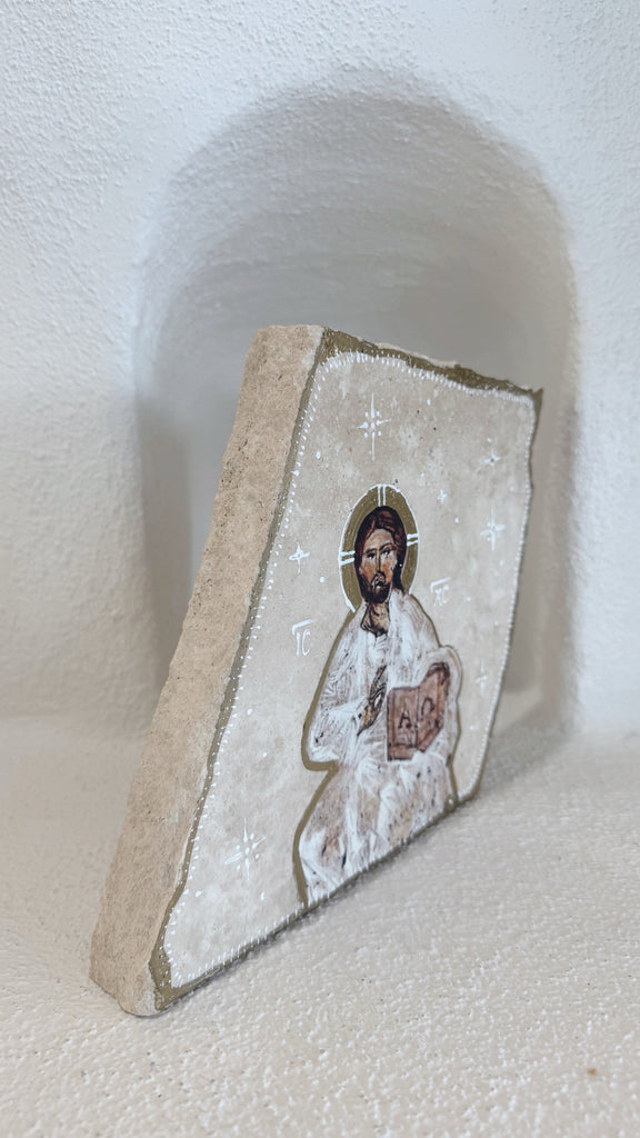 18kt GOLD GUILDED JESUS CHRIST - TRAVERTINE ICON