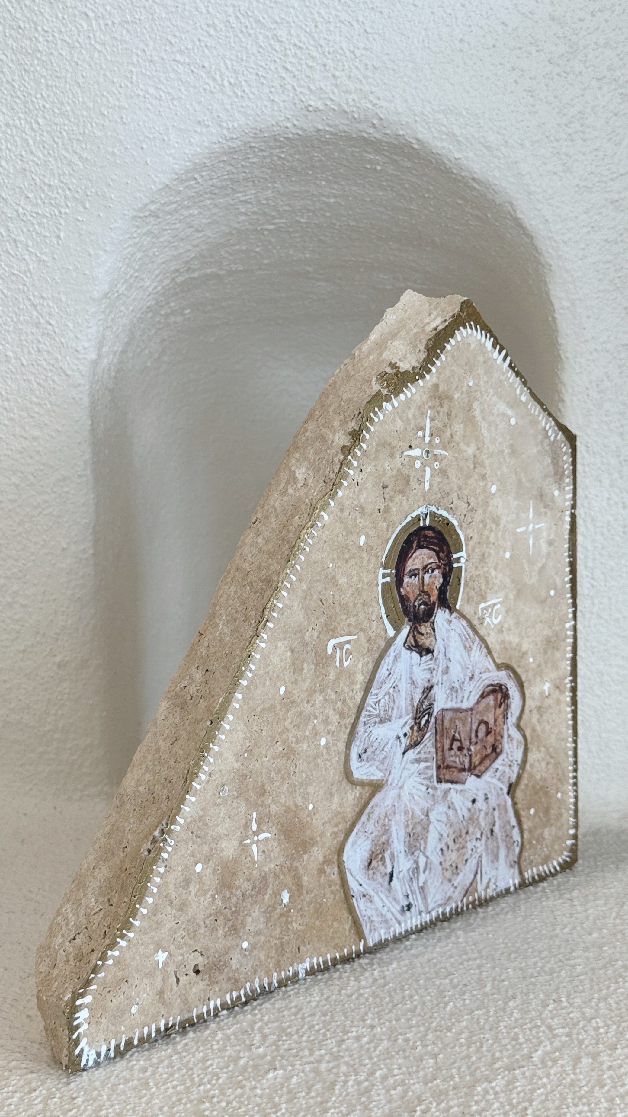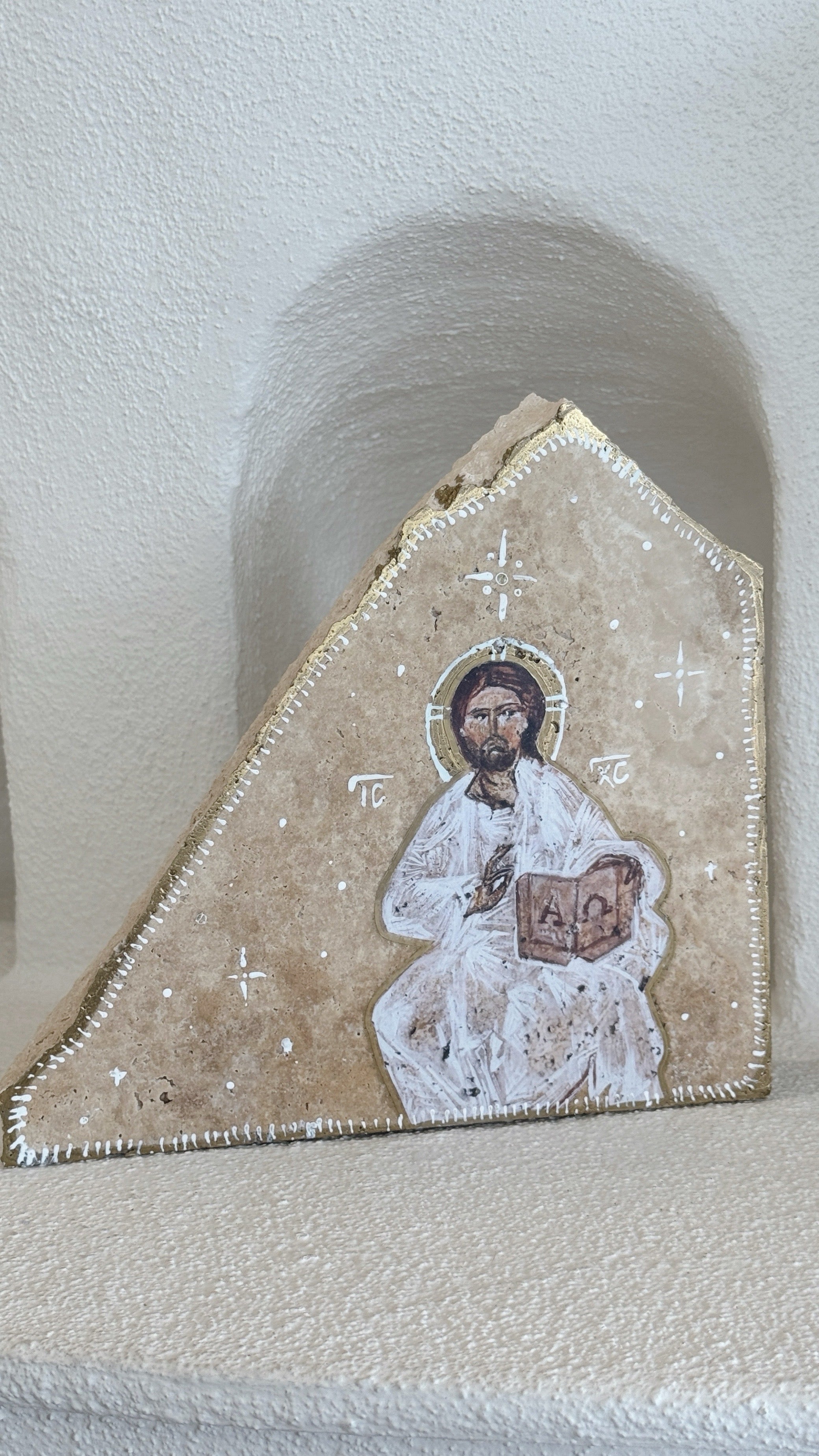 18kt GOLD GUILDED JESUS CHRIST - TRAVERTINE ICON