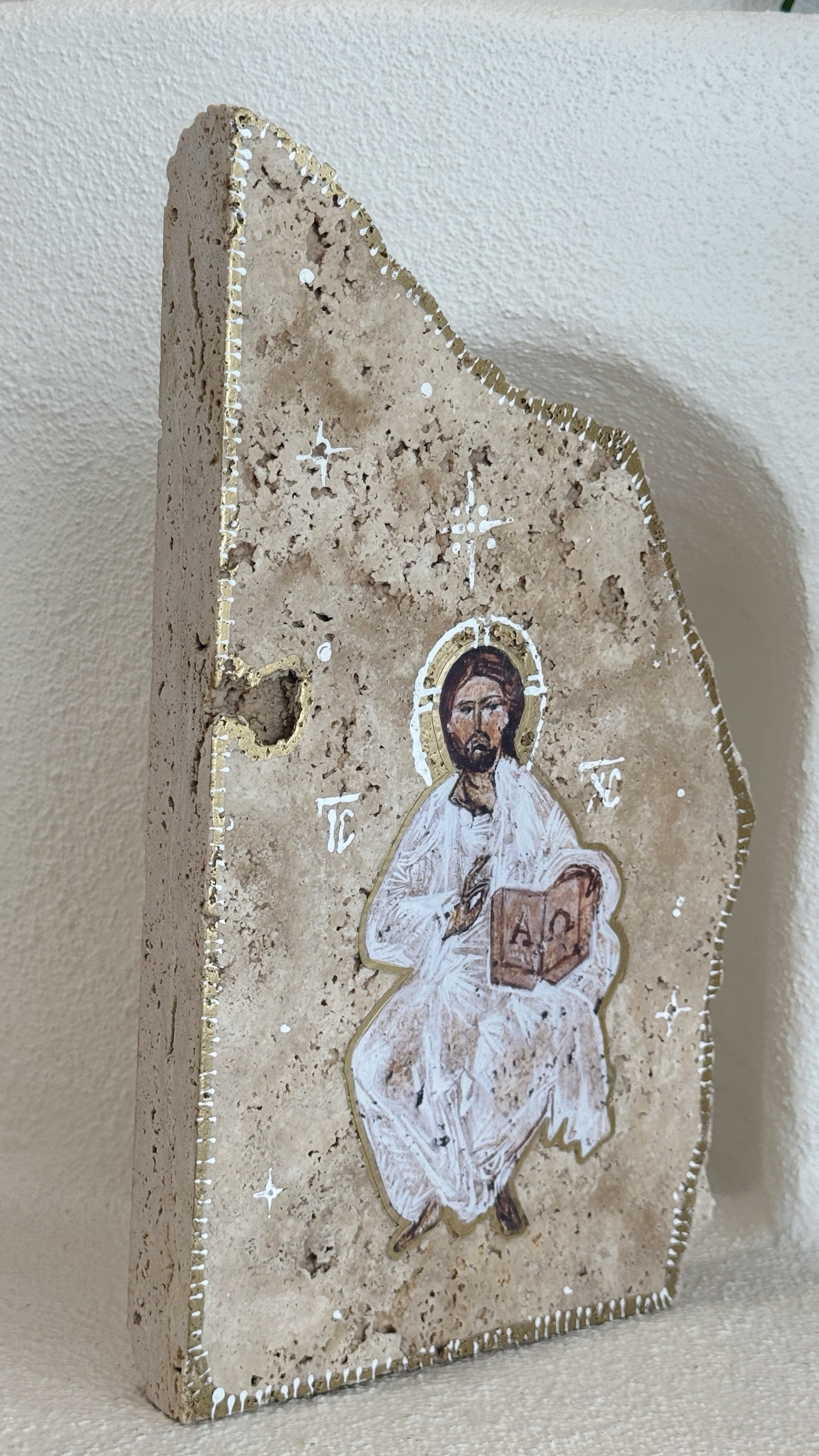 18kt GOLD GUILDED JESUS CHRIST - TRAVERTINE ICON