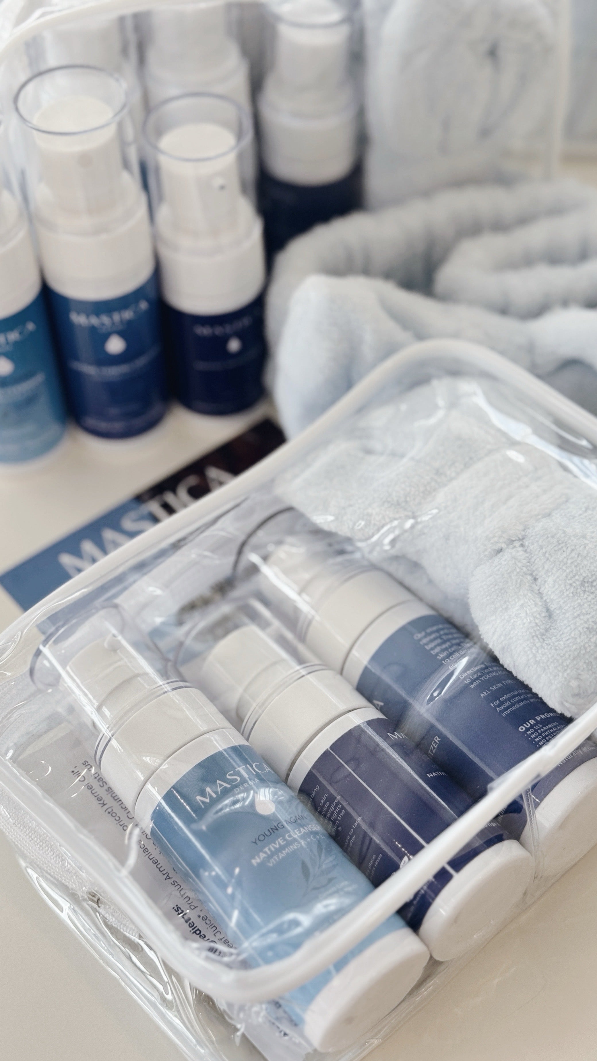 Trial packs are the perfect way to try our skincare without having to buy the full size versions. It includes a travel bag, cleanser, toner, moisturiser and a cute headband so you can remove your makeup seamlessly. The products should last you around two months, the perfect amount of time to see if its right for you!