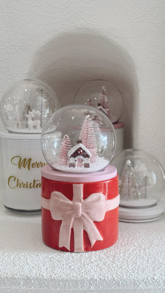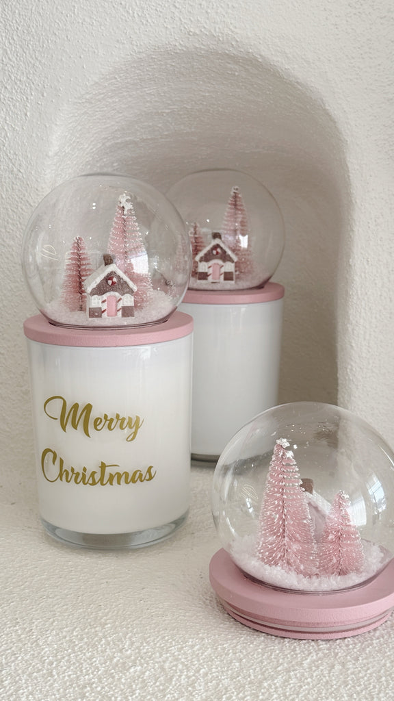 SNOWGLOBE GINGERBREAD HOUSE CANDLE- PINK