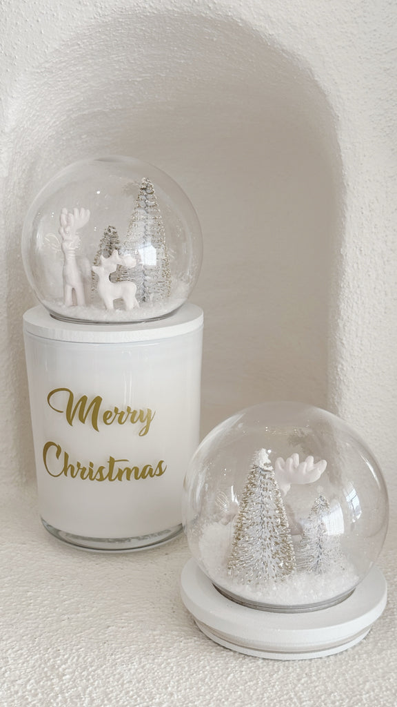SNOWGLOBE REINDEER CANDLE- WHITE