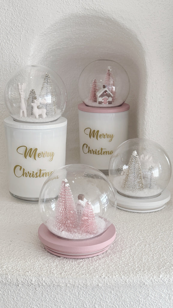 Encased in a dreamy snow globe, this piece captures the magic of Christmas with soft pink trees, a charming gingerbread house, and a gentle dusting of snow — all perfectly paired with our signature white and gold detailing.
